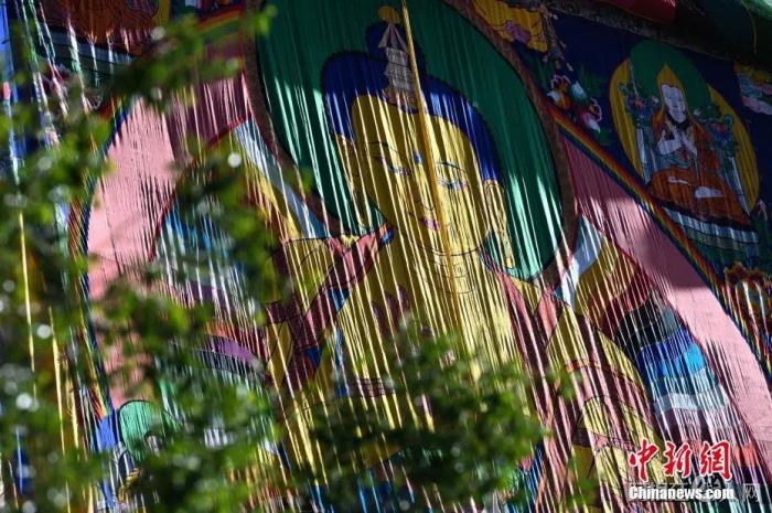 资料图:扎什伦布寺展出强巴佛唐卡佛像。何蓬磊 摄