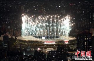 8月24日,2020东京残奥会开幕式在东京新国立竞技场举行。图为开幕式上的烟花表演。