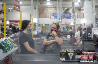 资料图:当地时间7月30日,美国纽约州市民在长岛一家超市购物时佩戴口罩。 中新社记者 廖攀 摄