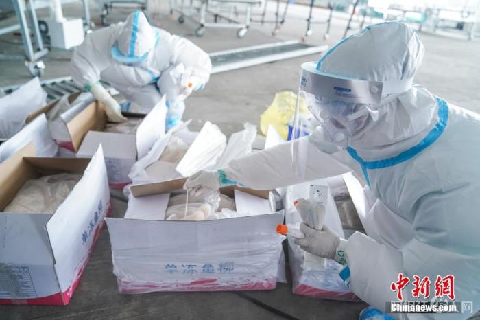 资料图:工作人员现场采集进口冷链食品核酸样本。 中新社记者 陈冠言 摄