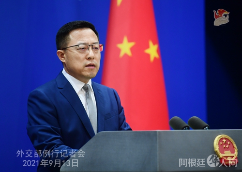 赵立坚指出,台湾问题是中美关系中最重要最敏感的核心问题,一个中国原则是中美关系的政治基础。美方在《中美建交公报》中明确承诺,美国人民将同台湾人民保持文化、商务和其他非官方关系。9月10日,中美元首通话时,拜登总统表示,美方从无意改变一个中国政策。中方已就上述媒体报道的有关动向向美方提出严正交涉。