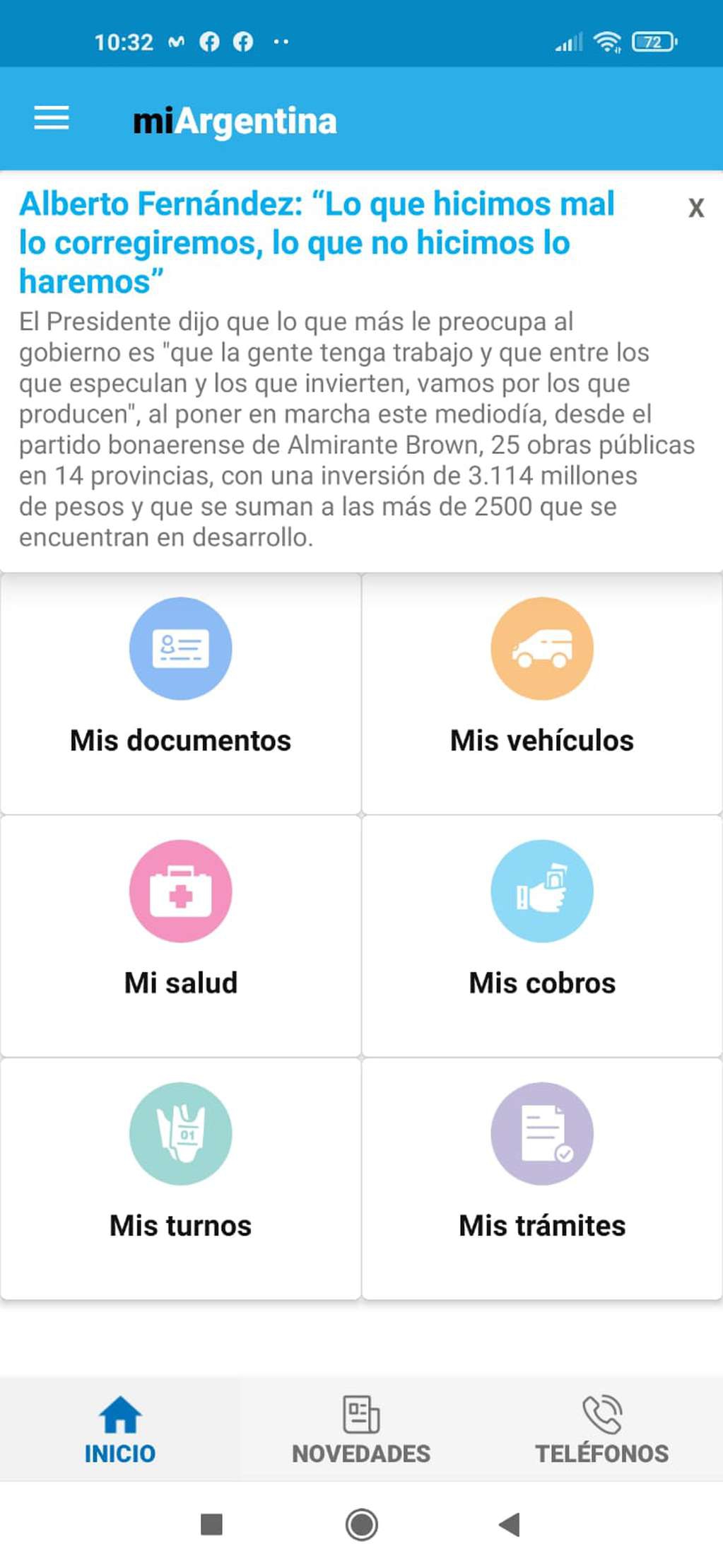 (阿根廷华人网9月15日讯/Andres)阿根廷政府在疫情期间大力推广并使用的官方Mi Argentina手机软件本为集个人数字档案、手续办理、预约查询以及相关资料等信息的便民一体化窗口,可近日该软件首页竟在数小时内显示了有关现任国家总统阿尔贝托·费尔南德斯以及其所在政党的相关竞选标语。