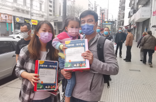 今日,阿根廷华文教育基金会在阿根廷华人最集中的ONCE区福旺超市门口为山东籍侨胞和侨界60岁以上同胞分发中秋月饼和“一封家书”。