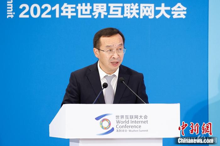 9月26日下午,由中国新闻社主办的“2021年世界互联网大会乌镇峰会——全球抗疫与国际传播论坛”在浙江乌镇举行,中国新闻社社长陈陆军出席论坛并致辞。中新社记者 韩海丹 摄