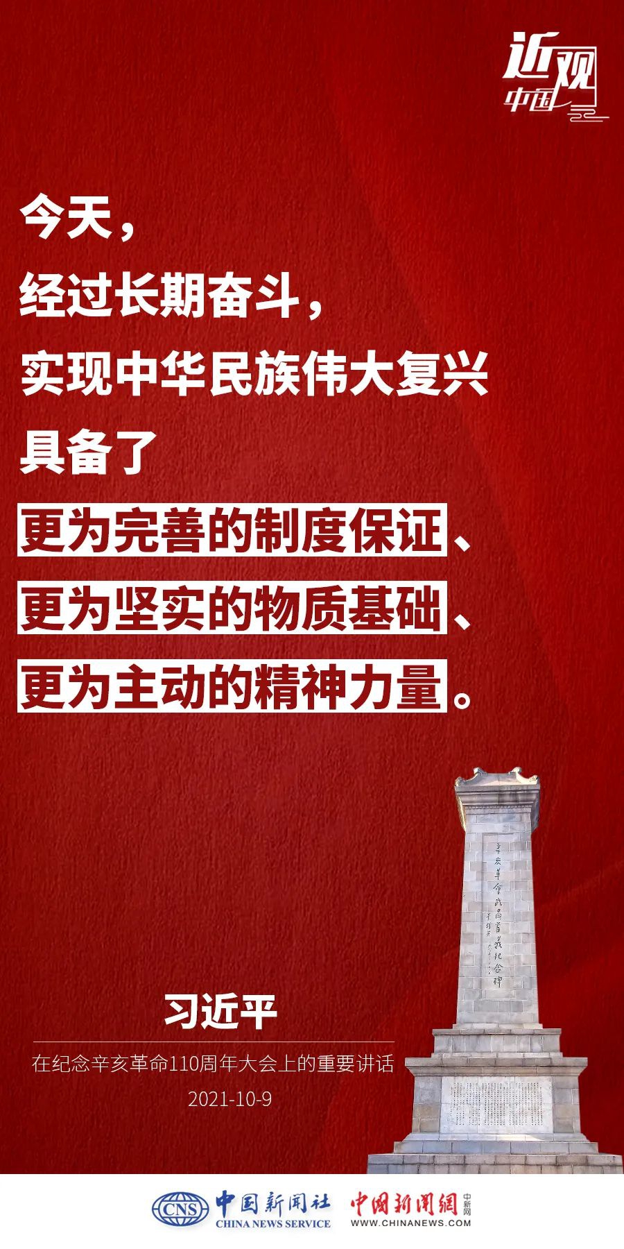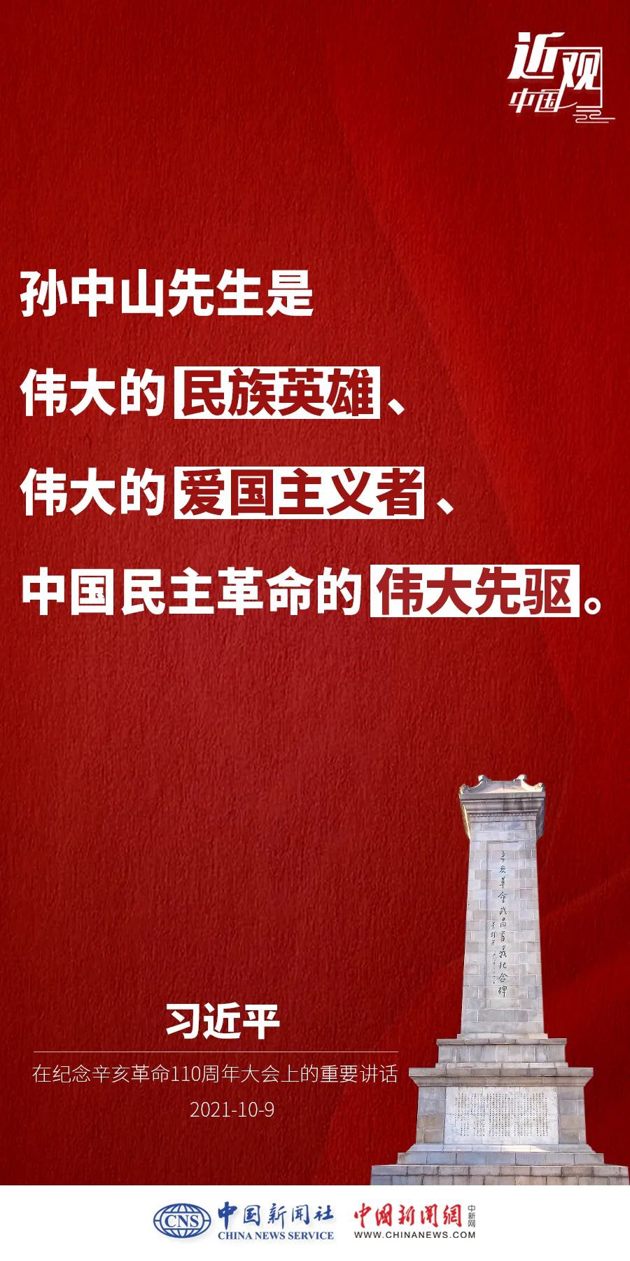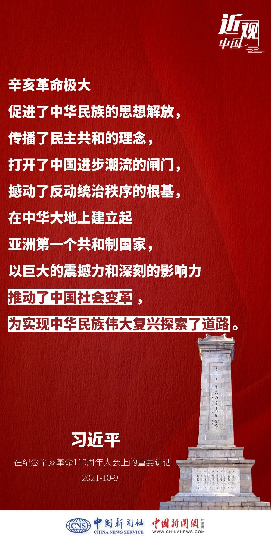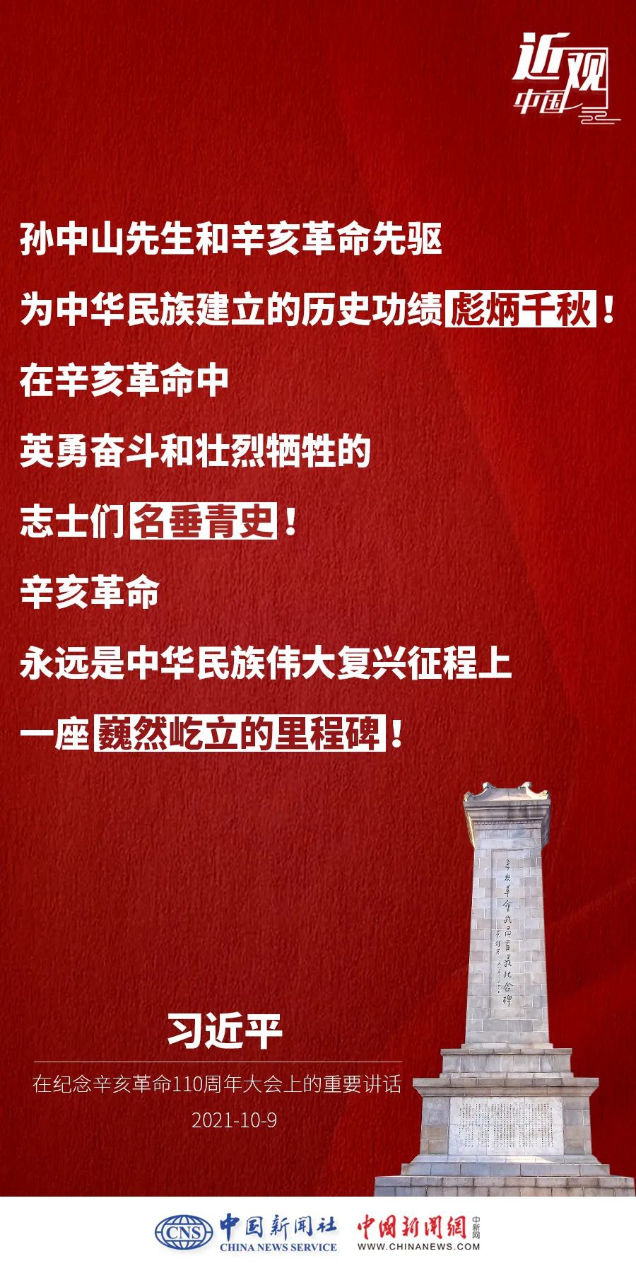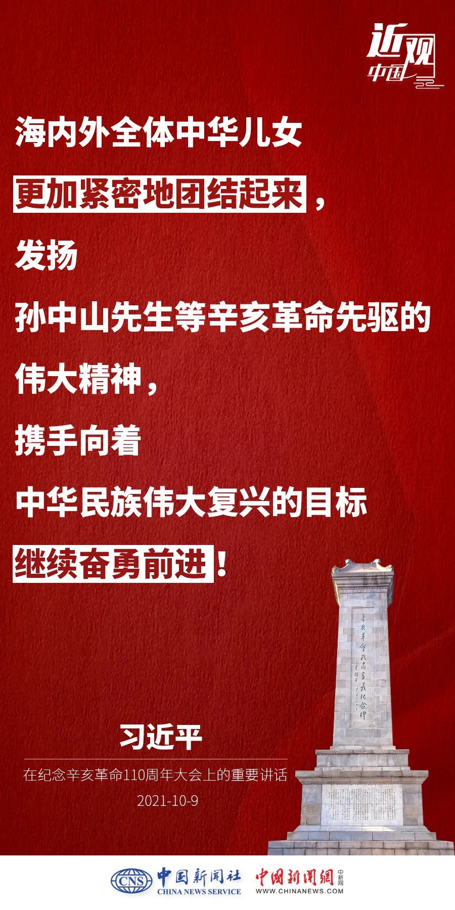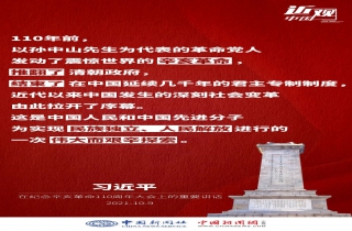 纪念辛亥革命110周年大会10月9日举行,中共中央总书记、国家主席、中央军委主席习近平出席并发表重要讲话。他强调——