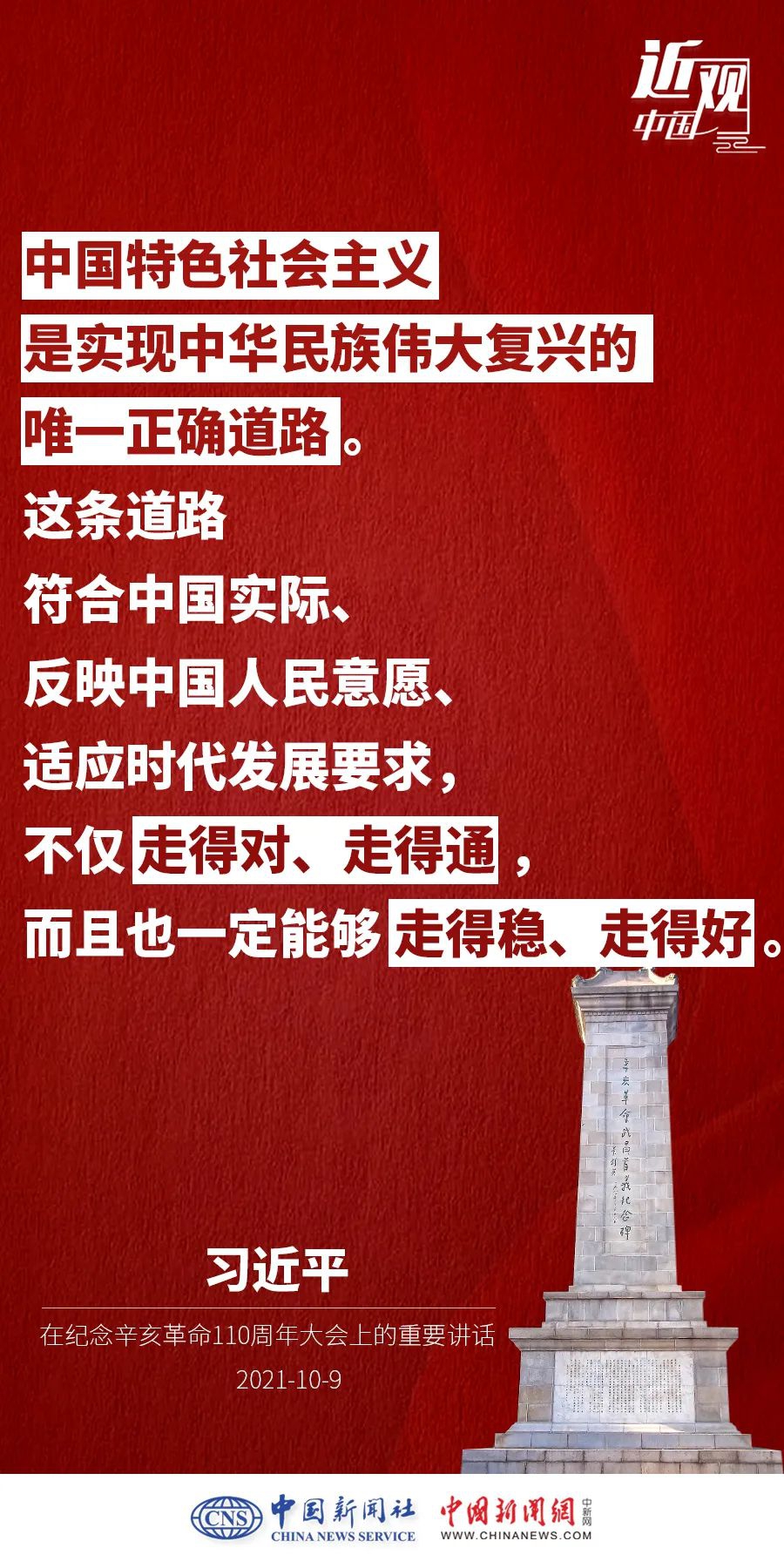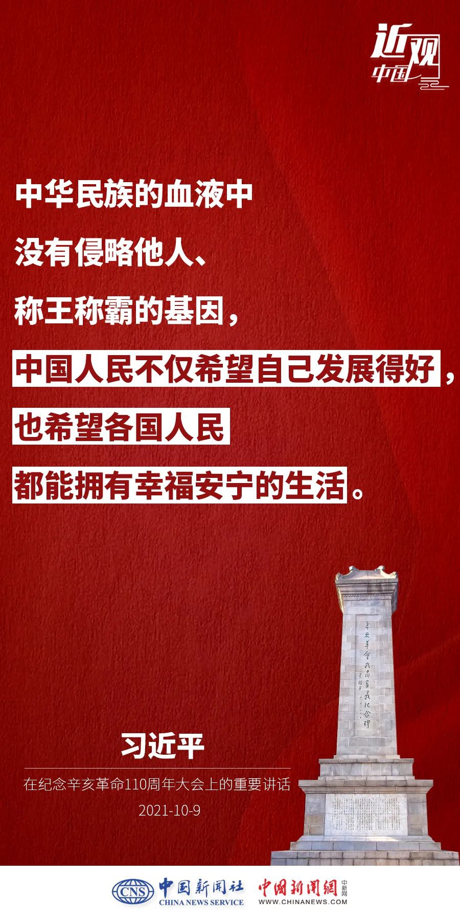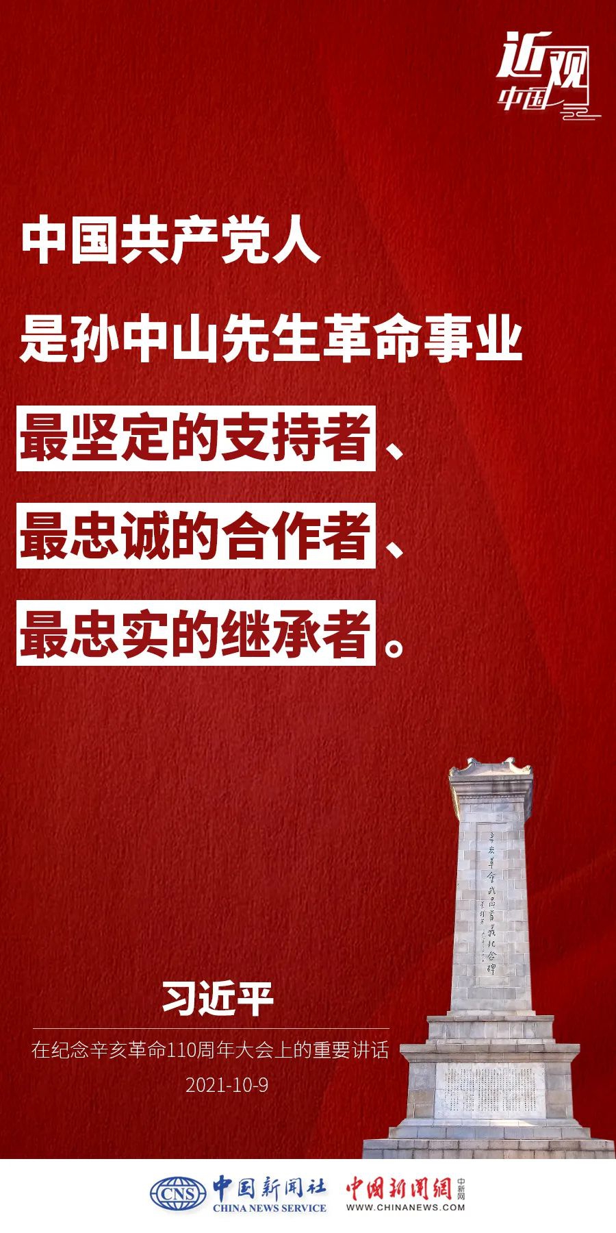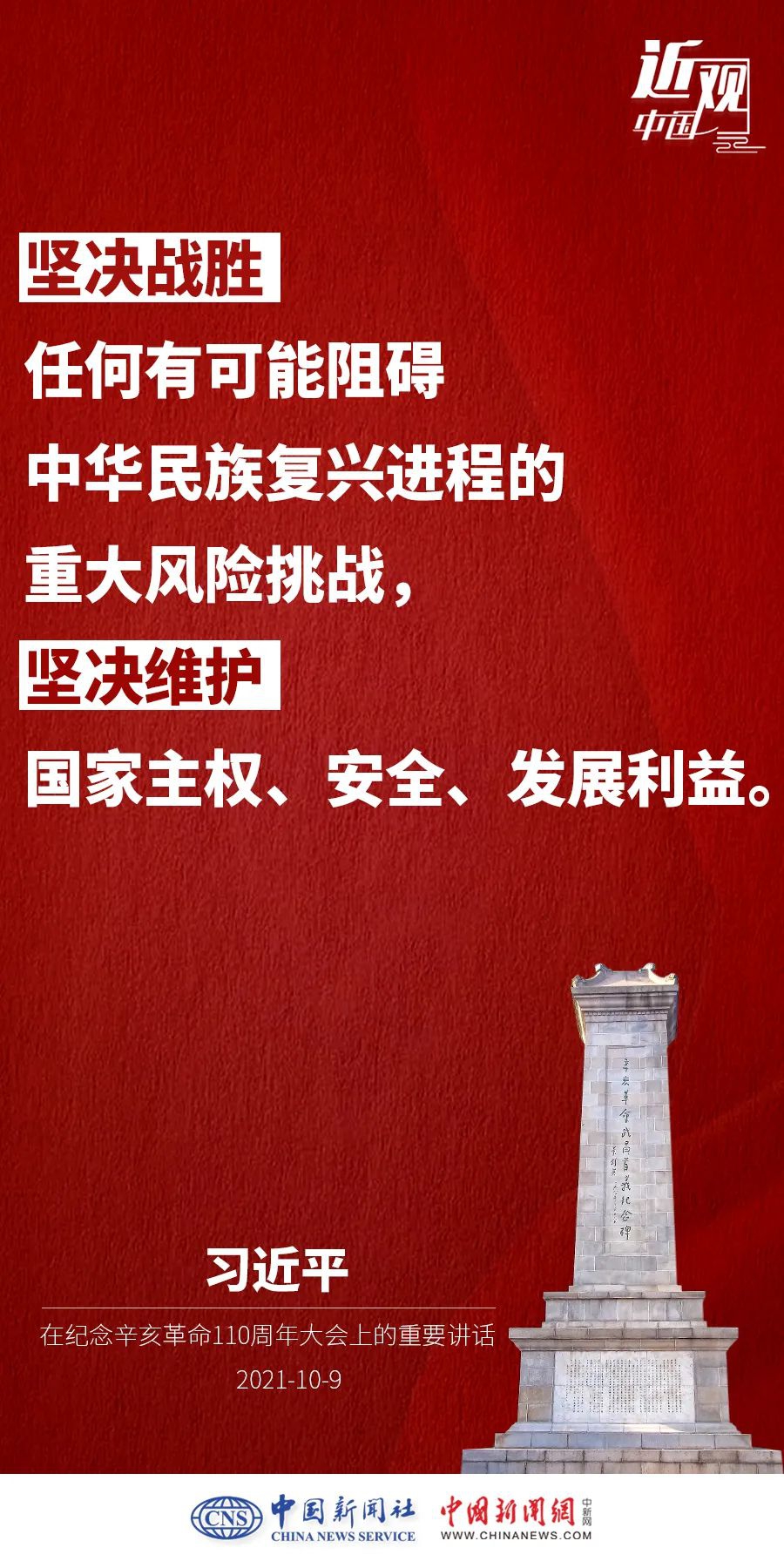 纪念辛亥革命110周年大会10月9日举行,中共中央总书记、国家主席、中央军委主席习近平出席并发表重要讲话。他强调——