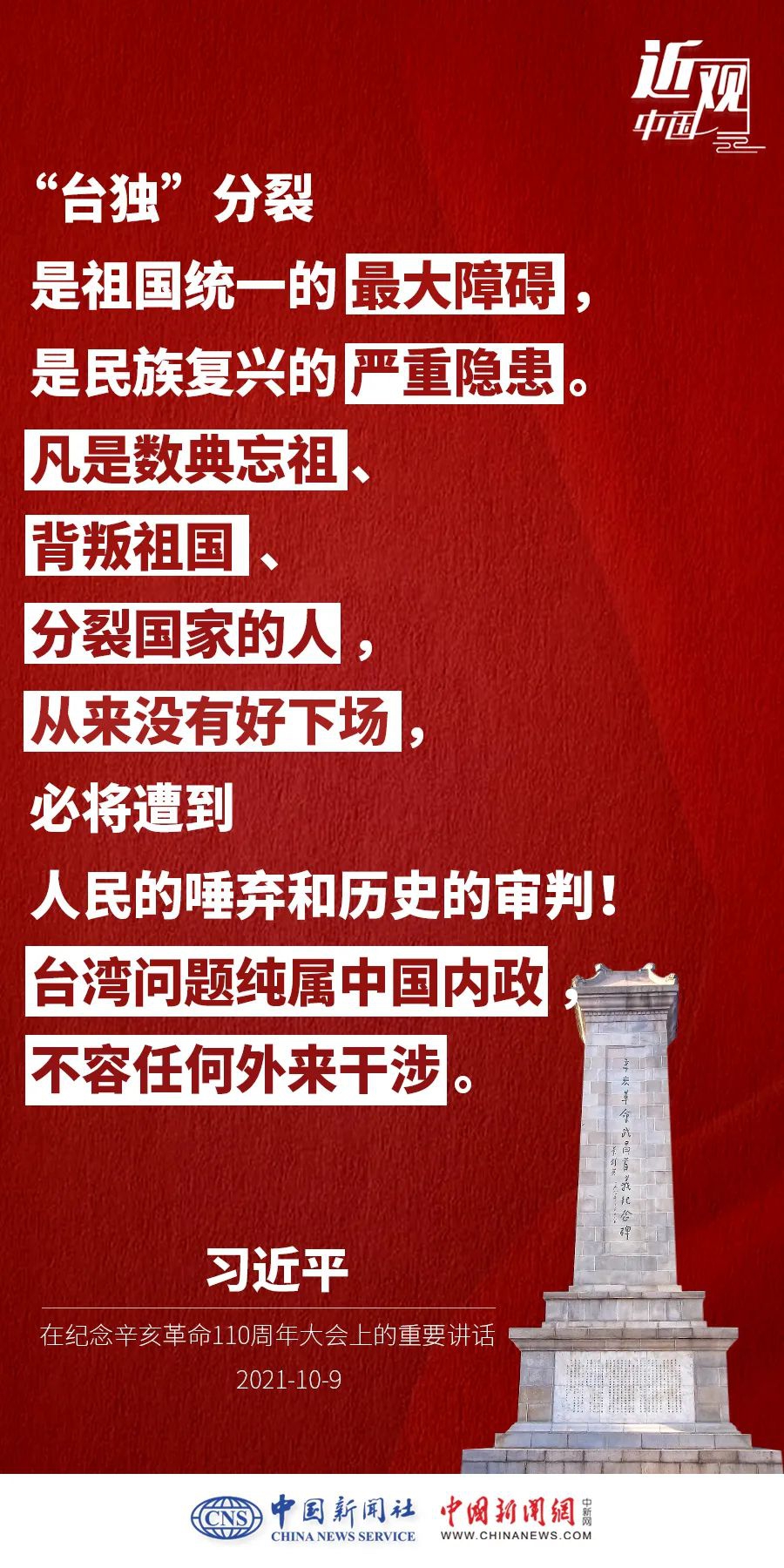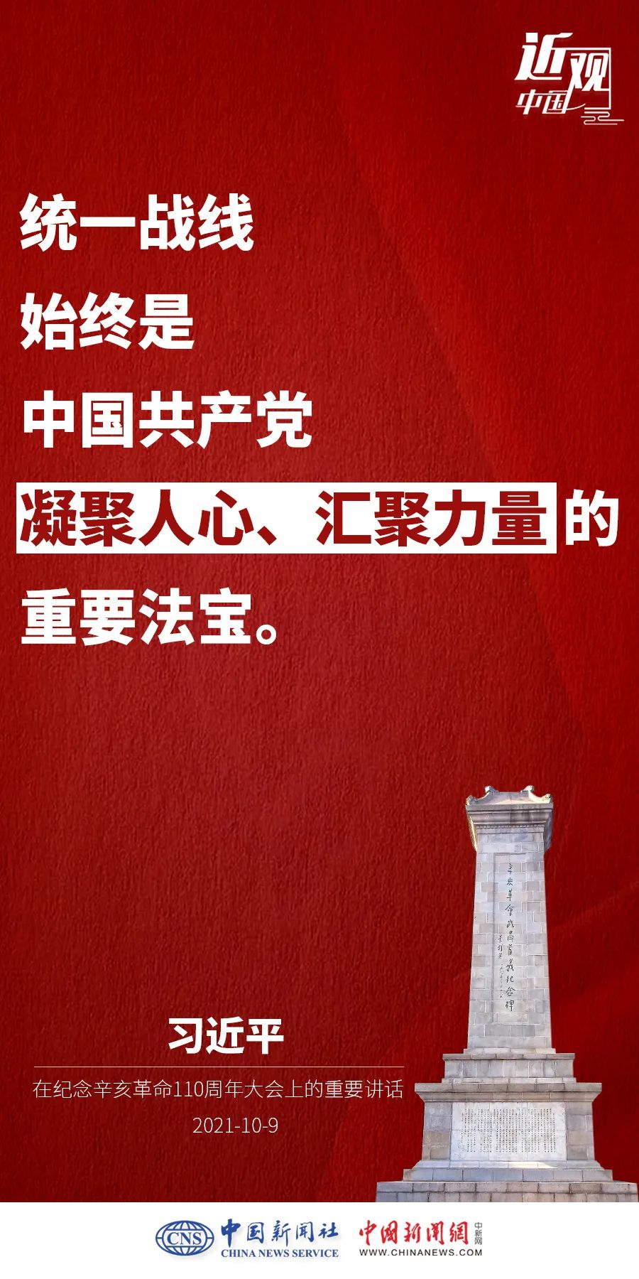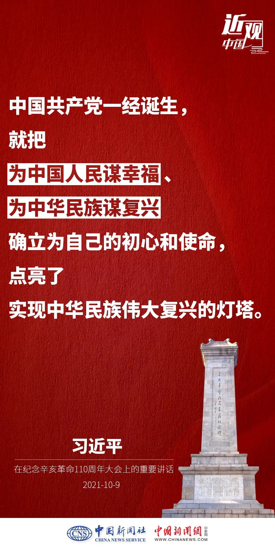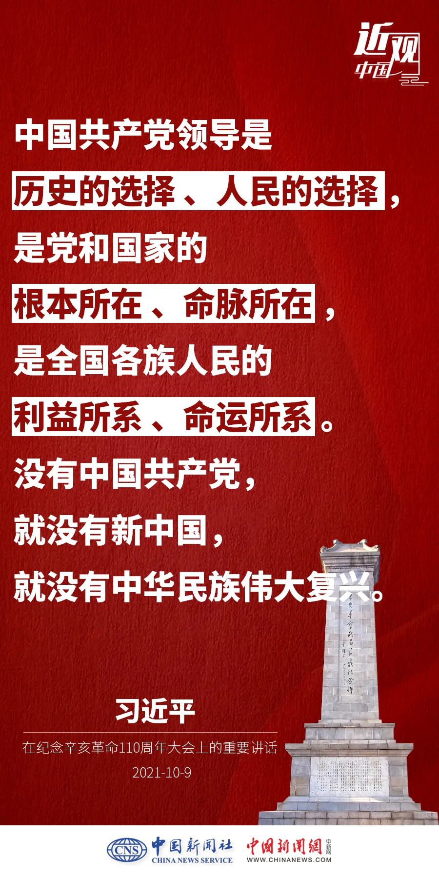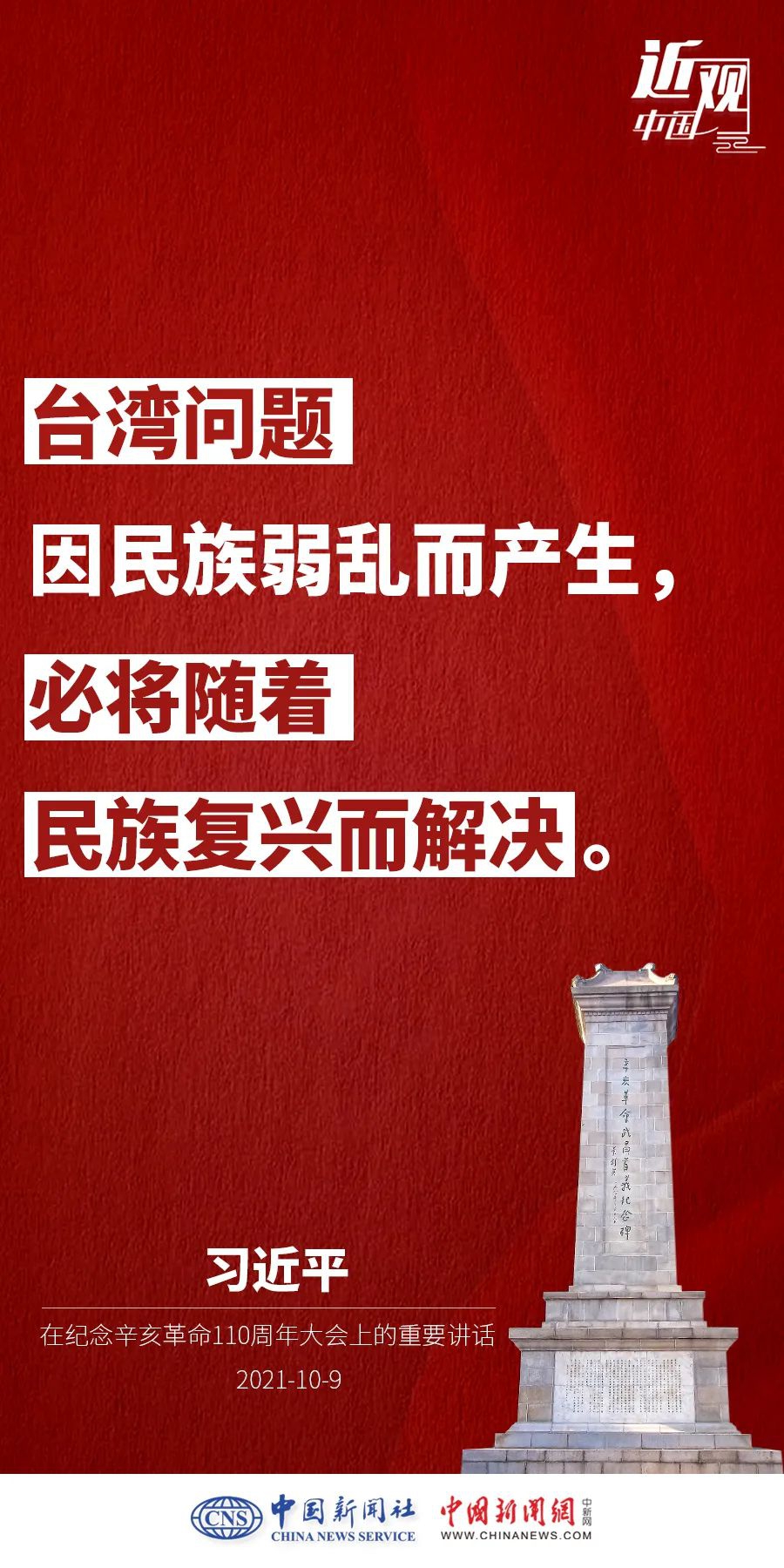 纪念辛亥革命110周年大会10月9日举行,中共中央总书记、国家主席、中央军委主席习近平出席并发表重要讲话。他强调——