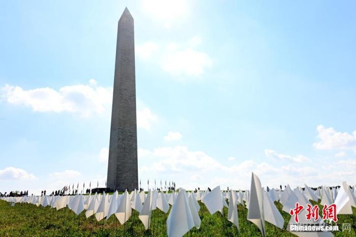 资料图:当地时间9月18日,美国首都华盛顿国家广场上插着数十万白色旗帜,悼念新冠逝者。 中新社记者 陈孟统 摄