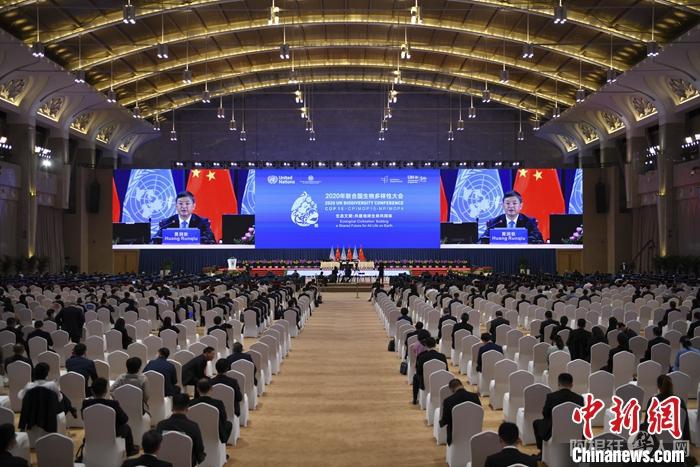10月12日,《生物多样性公约》第十五次缔约方大会部长级全体会议在云南昆明举行。图为中国生态环境部部长黄润秋主持会议。 中新社记者 刘冉阳 摄