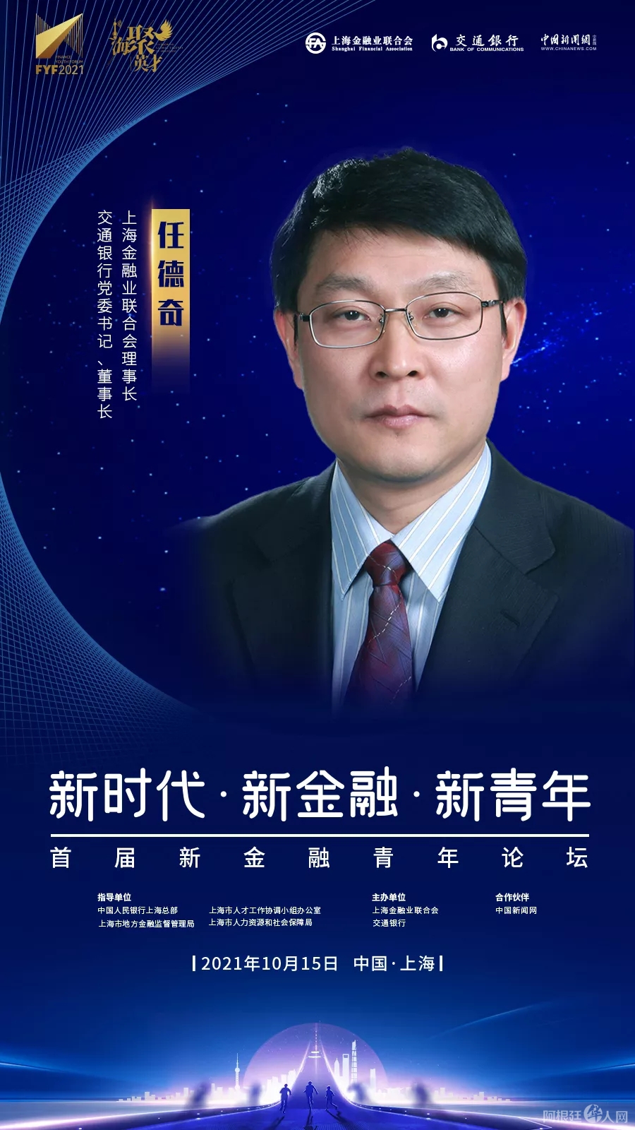 本次论坛由中国人民银行上海总部、上海市人才工作协调小组办公室、上海市地方金融监督管理局、上海市人力资源和社会保障局指导,由上海金融业联合会、交通银行主办,中国新闻网为合作伙伴。