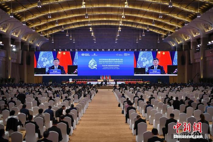 10月12日,《生物多样性公约》第十五次缔约方大会部长级全体会议在云南昆明举行。图为中国生态环境部部长黄润秋主持会议。 中新社记者 刘冉阳 摄