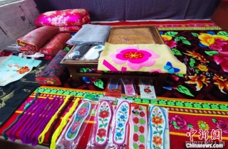 2021年10月,在甘肃临夏州东乡县布楞沟村民俗体验区拍摄的东乡刺绣。 吉翔 摄
