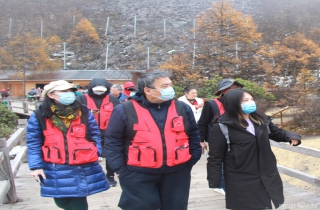 当日正值深秋,虽然气温较低,但游客们的热情依然高涨。游人如织,但黄龙风景名胜区内防疫工作仍然有序开展。海外华文媒体一行看到,游人们均佩戴着口罩,在开心游览的同时,仍然保持了较好的社交距离。