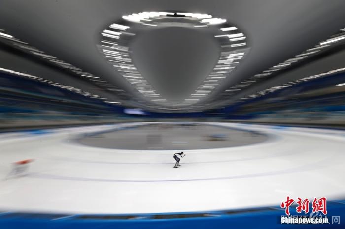 10月8日,首场北京冬奥测试赛——“相约北京”速度滑冰中国公开赛在国家速滑馆“冰丝带”举行。本次比赛持续3天,设12个小项,有来自中国、韩国、荷兰的运动员参加比赛。图为女子3000米比赛。 中新社记者 富田 摄