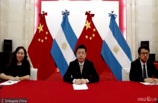 11月3日,驻阿根廷大使邹肖力线上会见阿根廷交通部长盖雷拉。