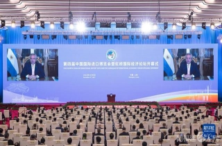 11月4日,阿根廷总统费尔南德斯应邀以视频形式出席第四届中国国际进口博览会暨虹桥国际经济论坛开幕式并致辞,卡菲耶罗外长在线参加上述活动。