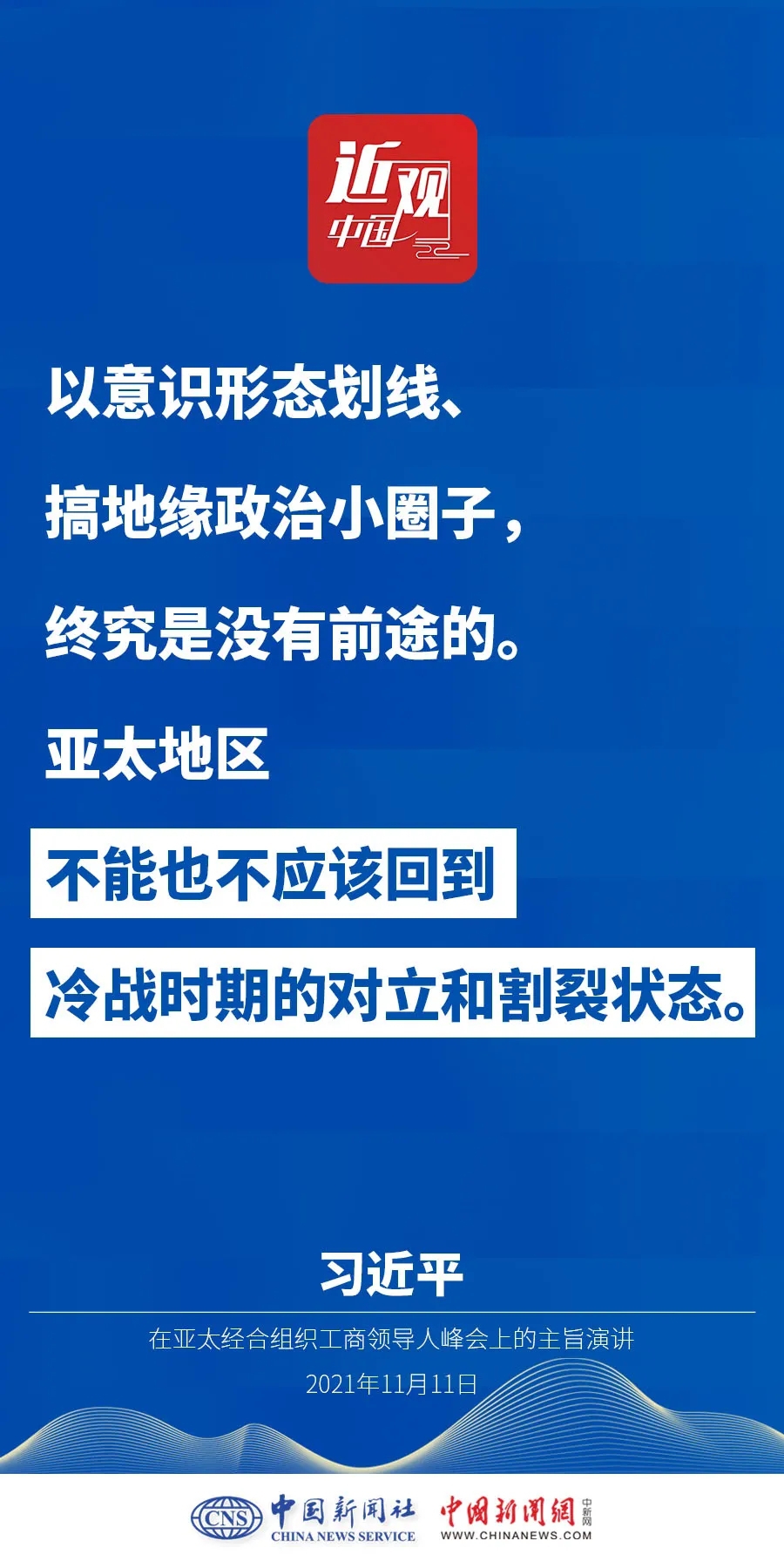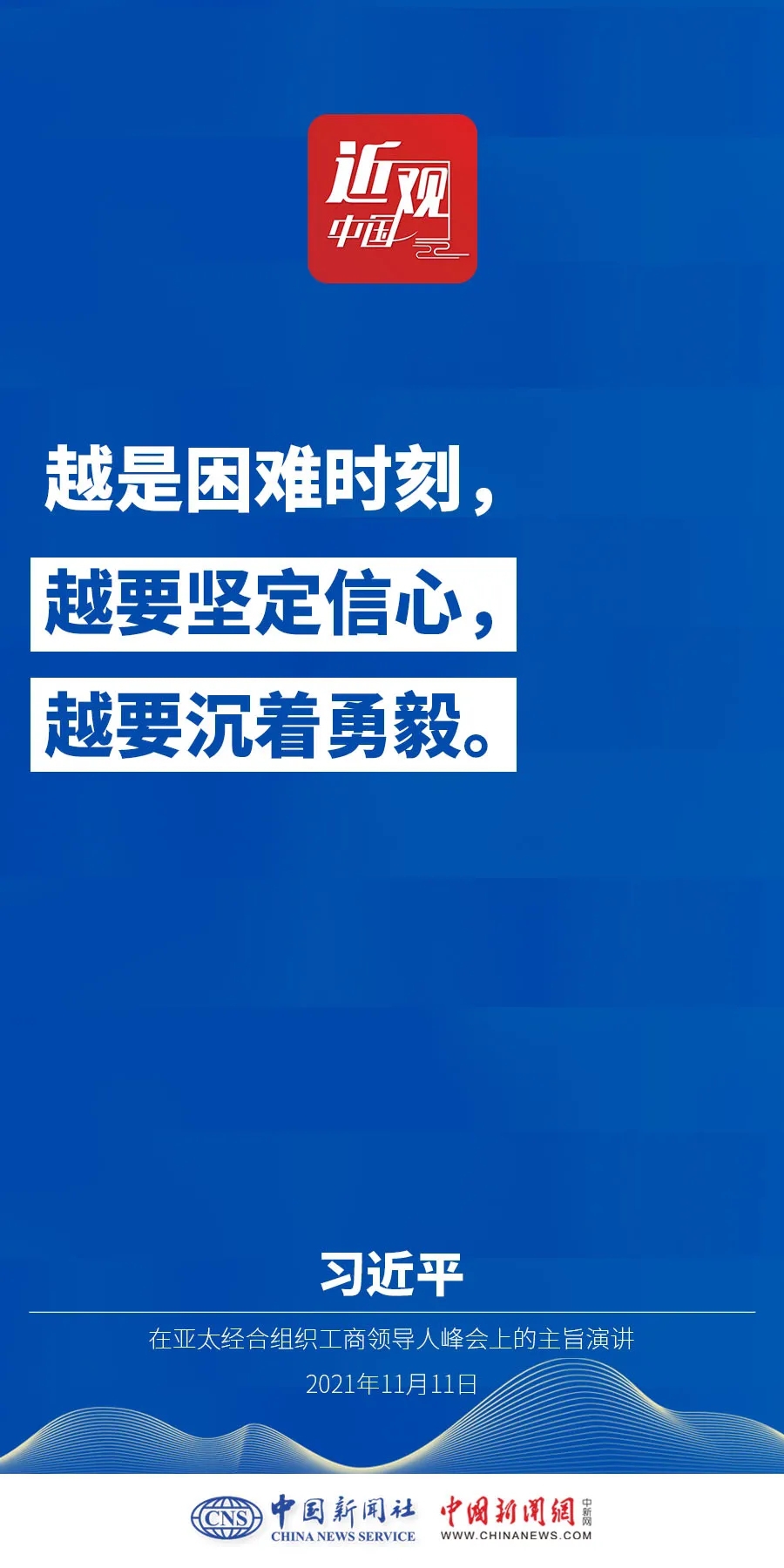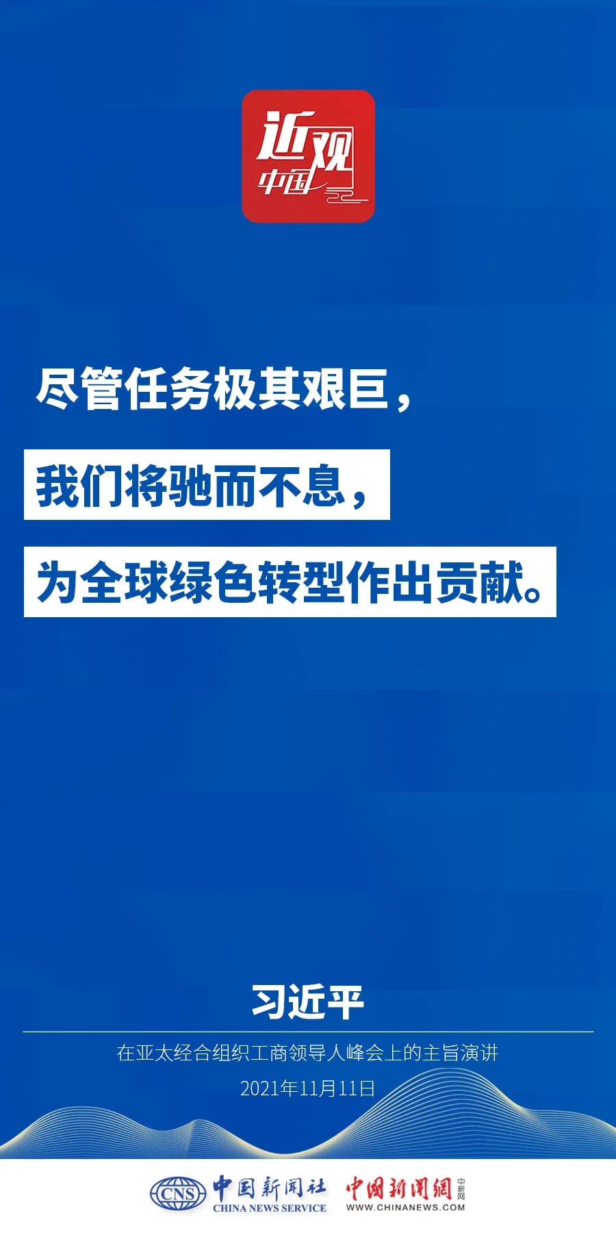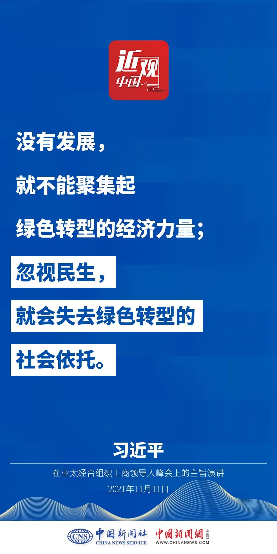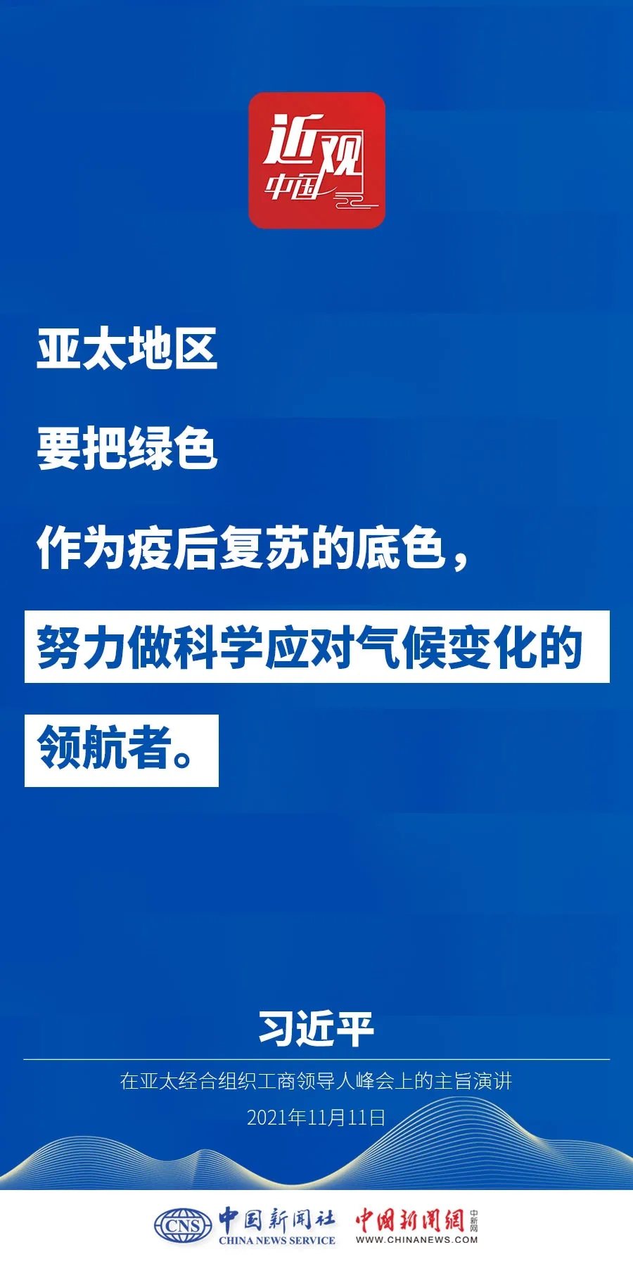11月11日,国家主席习近平应邀在北京以视频方式向亚太经合组织工商领导人峰会发表题为《坚持可持续发展 共建亚太命运共同体》的主旨演讲。他强调——