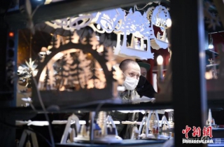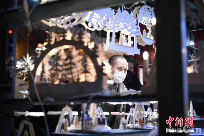 资料图:一名戴口罩的男子在德国柏林宪兵广场圣诞市场上。在2020年因新冠疫情被迫取消后,柏林一年一度的圣诞市场再度重开。进入市场的人需要提供完全接种疫苗或曾经感染过新冠后痊愈的证明,并佩戴口罩。 中新社发 孔芳 摄