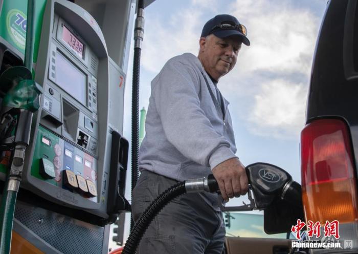 资料图:当地时间11月16日,一位车主在美国加州圣马刁县一处加油站内加油。据美国汽车协会的数据,加利福尼亚州的汽油价格当日创下历史新高,每加仑普通汽油的平均价格飙升至4.687美元,居全美各州之首。 中新社记者 刘关关 摄