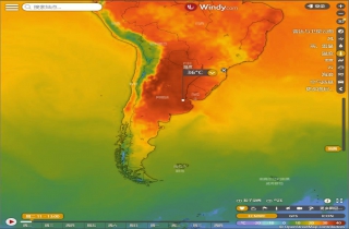 气象实时监控网站Windy可使用全球各地的气象卫星所收集的数据生成实时地图,而这是目前阿根廷全国范围的温度示意图。您也可以点击此处前往Windy官网查看实时气候气温变化。