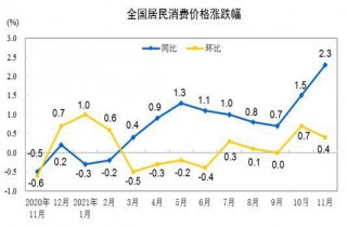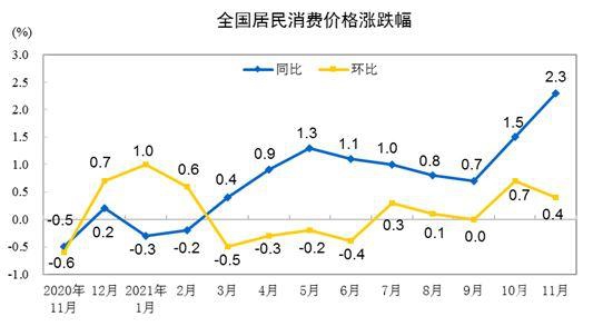 鲜菜价格大涨等带动下,2021年11月份CPI同比涨幅明显扩大,时隔14个月重回“2时代”。