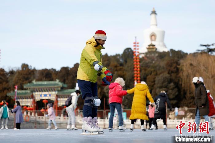 图为游客在北海公园冰场滑冰。 中新社记者 富田 摄