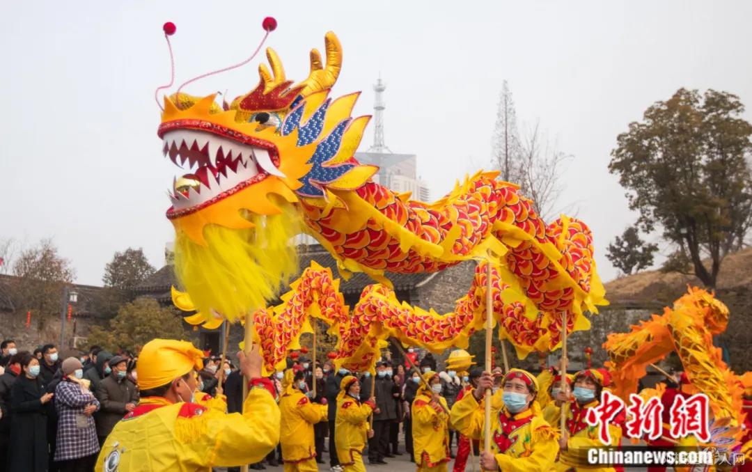 2022年1月19日,江苏省盱眙县“福虎送吉祥 非遗过大年”百场系列文旅活动启动,一批非遗民俗表演项目轮番上演,吸引民众前来感受“年味”。中新社记者 泱波 摄