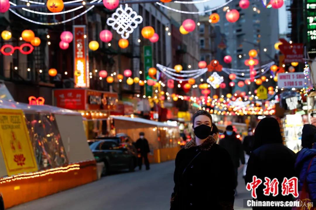 2021年1月,美国纽约曼哈顿中国城街道张灯结彩,准备迎接即将到来的中国春节。中新社记者 廖攀 摄
