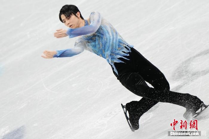 2月8日,北京冬奥会花样滑冰男子单人滑短节目比赛在首都体育馆举行,图为日本名将羽生结弦在比赛中。 中新社记者 崔楠 摄