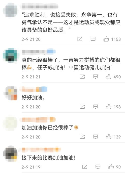 赛场内,运动员尽全力拼搏,也坦然面对结果;赛场外,无数中国网友表达对运动员的支持。