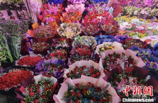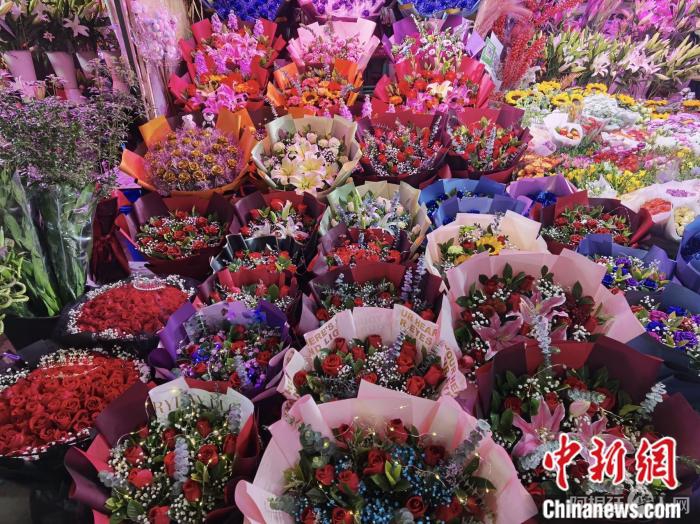 鲜花批发市场里的情人节预定花束。 中新网 左宇坤 摄