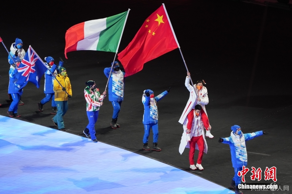 运动员们的入场仪式也可谓花样百出。中国体育代表团闭幕式旗手高亭宇肩扛另一位旗手徐梦桃出场,国旗高高飘扬。有网友打趣道:“是我的想象力输了!”