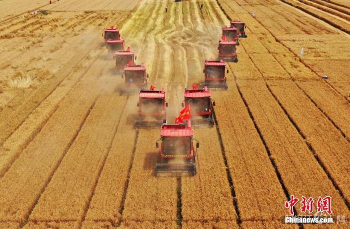 资料图:小麦开镰现场。中新社记者 翟羽佳 摄