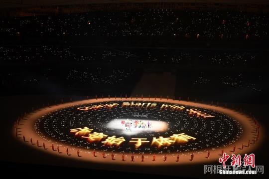 3月4日,北京2022年冬残奥会开幕式在北京国家体育场举行。图为场地中央的视频影像,全部由盲文构成。 中新社记者 杨华峰 摄