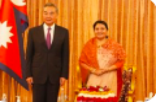 中新社北京3月27日电 当地时间3月27日,尼泊尔总统班达里在加德满都总统府会见正在访尼的中国国务委员兼外长王毅。