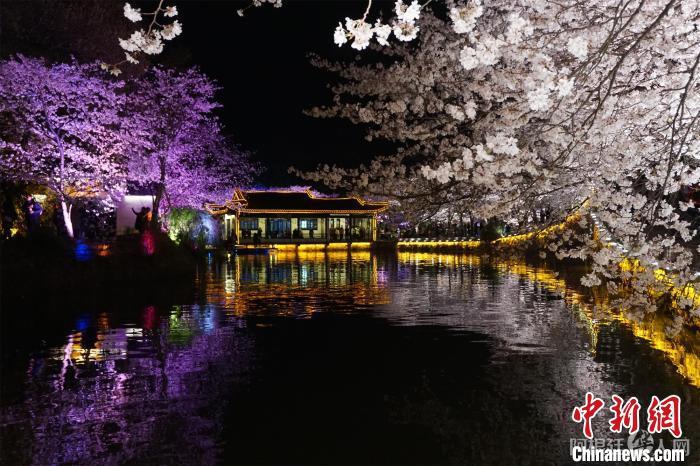 无锡太湖鼋头渚夜樱。 孙权 摄