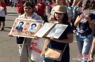 资料图:俄罗斯民众参加“不朽军团”游行。