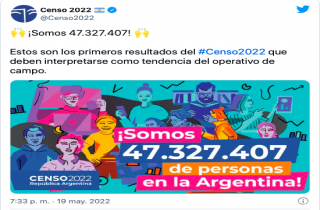 (阿根廷华人网5月19日讯 黄东)在阿根廷于本周三完成2022全国人口普查后,阿根廷国家统计局本周四晚间公布了首份官方初步数据。