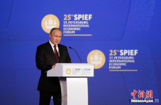当地时间6月17日,俄总统普京在第25届圣彼得堡国际经济论坛全体会议上发表讲话。圣彼得堡国际经济论坛 供图
