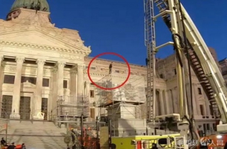 (阿根廷华人网7月2日讯 黄东)本周五,一名男子翻过国会围栏,爬上了国会外墙边上的脚手架并威胁要跳下,最后被消防人员救下。