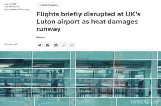 飙升的气温甚至让机场跑道都“吃不消”。当日,伦敦卢顿机场(London Luton Airport)的航班暂时中断,原因是高温使部分机场跑道“融化”,从而出现“缺陷”。