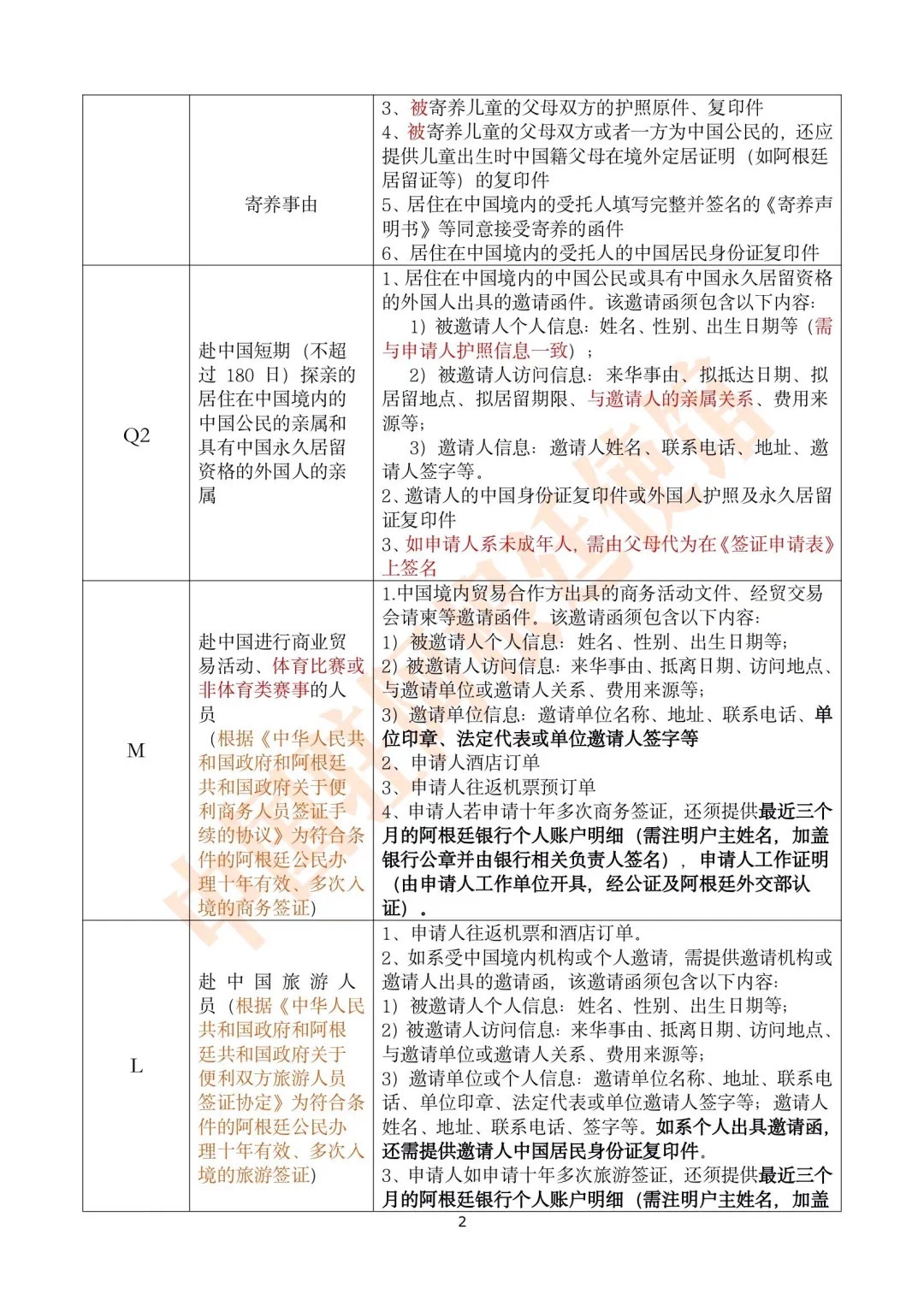五、目前,驻阿根廷使馆可正常受理C字签证(乘务签证)、F字签证(访问签证)、M字签证(贸易签证)、Q字签证(探亲或家庭团聚签证)、R字签证(人才签证)、S字签证(私人事务签证)、X字签证(学习签证,目前仅限长期学习)、Z字签证(工作签证)。暂不受理L字签证(旅游签证)。