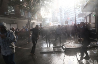 当天下午17点30分,事态开始出现紧张和冲突。在驱散行动和示威者的呐喊声中,数百人冲破了警方的封锁。