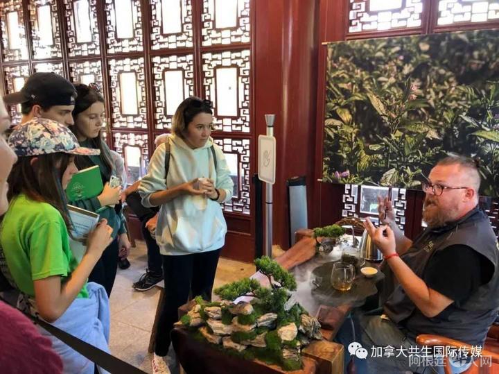 在欣赏精彩节目之余,观众们还积极参与主办方开展的文化推广活动。“沁谊堂”内,植物园工作人员丹·拉钱斯(Dan Lachance)先生娴熟地为观众沏上一杯杯铁观音茶,用法、英、中三种语言介绍中国茶文化(下图);