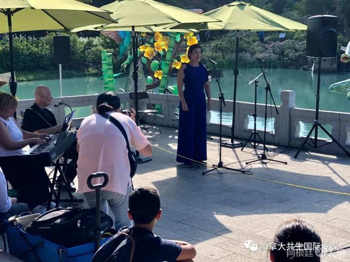 烈日下现场座无虚席,台上歌声悠扬,台下热烈鼓掌;场外游客闻声驻足,或聆听欣赏,或录影照相;湖周边、阁楼上、小桥端、石道旁……整个梦湖园沉浸在欢乐曼妙的气氛与旋律当中,一首首中西经典曲目在每一个角落唱响。