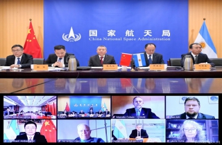 9月13日,中国国家航天局、阿根廷科技创新部、国家空间活动委员会在线举办首届中国—阿根廷航天论坛。中国国家航天局局长张克俭、阿根廷科技创新部部长菲尔姆斯、中国驻阿根廷大使邹肖力出席并致辞。