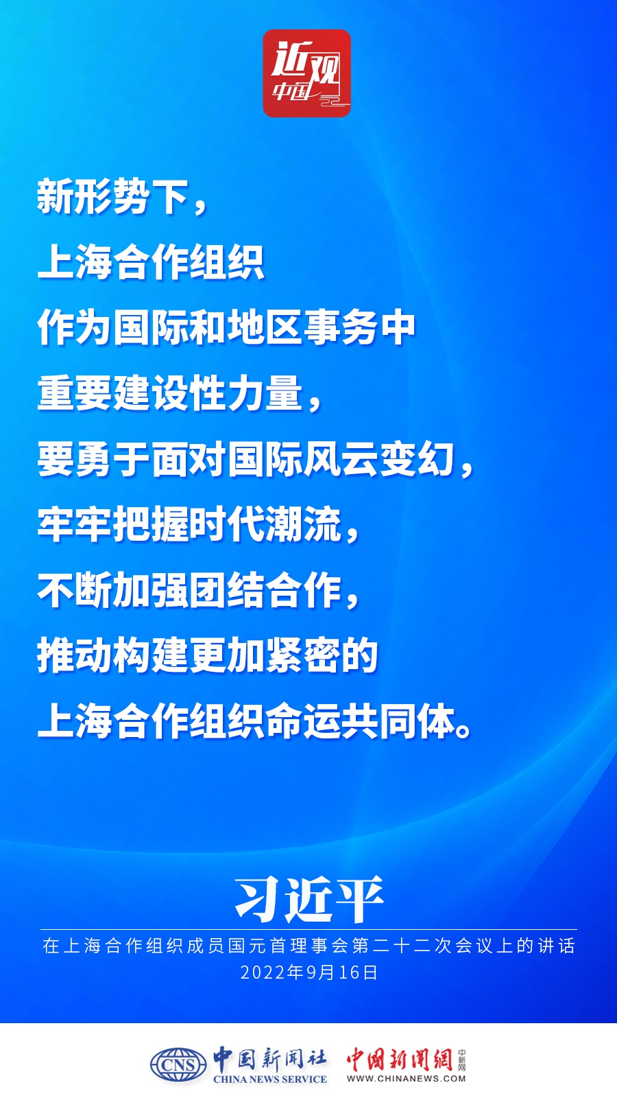 当地时间9月16日,国家主席习近平在撒马尔罕出席上海合作组织成员国元首理事会第二十二次会议,并发表题为《把握时代潮流 加强团结合作 共创美好未来》的重要讲话。习近平指出——