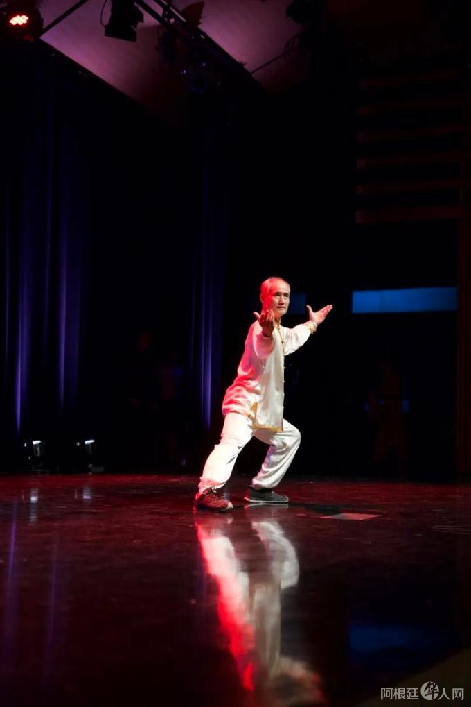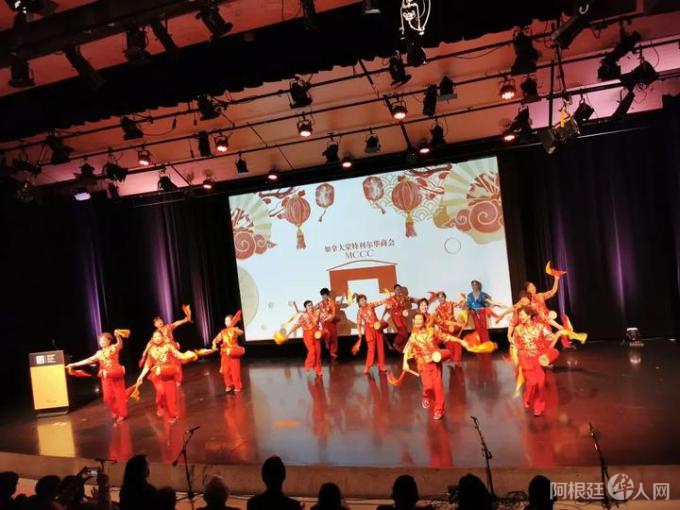 蒙特利尔华商会腰鼓队前来献艺展映会,腰鼓队的每一位舞者在腰间挂一椭圆形小鼓,双手各执鼓槌,鼓槌上的红彩绸上下翻飞,边敲边舞。每一位舞者踩着清脆多变的鼓点翩翩起舞。欢快的的鼓点、和谐的韵律吸引着每一位观众的眼球,精彩优美的表演、潇洒娴熟的舞姿赢得了观众们的阵阵喝彩。