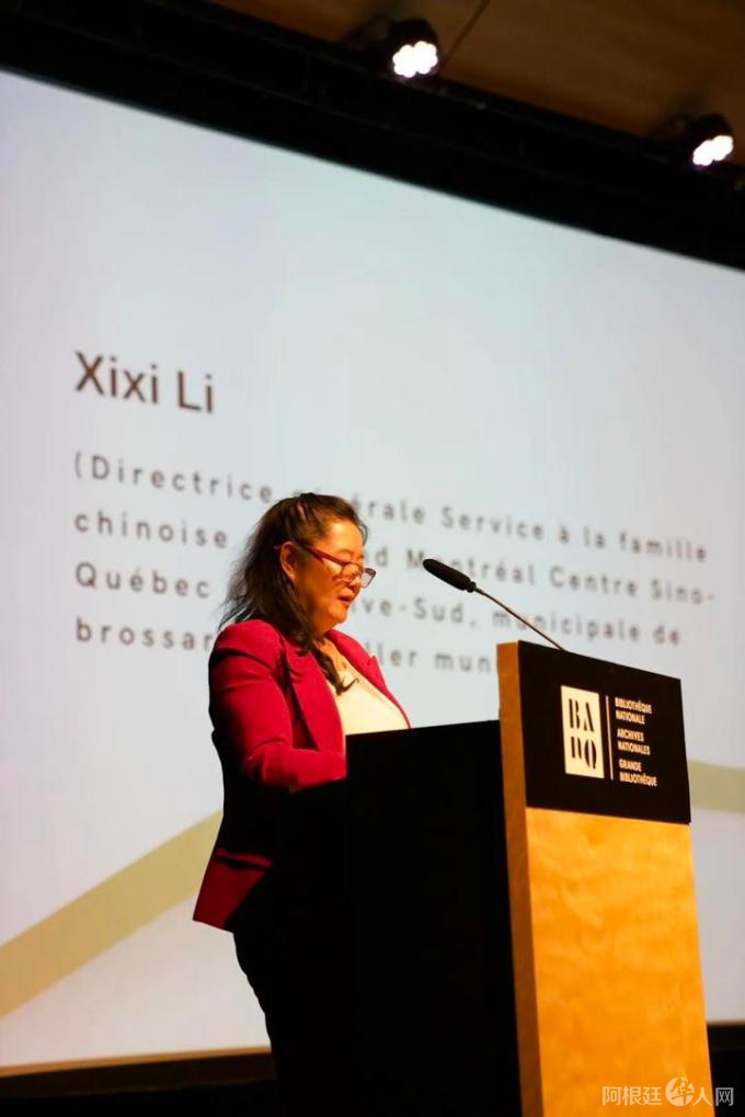 Brossard 市议员李茜茜女士为大会致辞, 她提到了环境和生物多样性保护的重要性并号召大家自觉保护生态环境。
