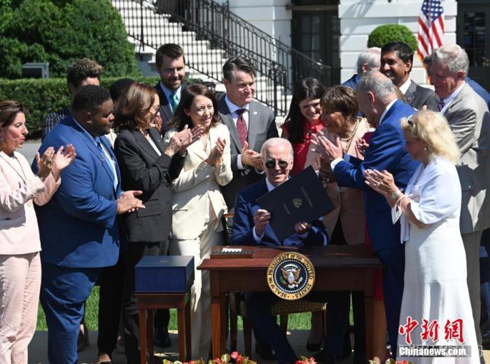 图为2022年8月,拜登在白宫签署《芯片和科学法案》。 中新社记者 陈孟统 摄